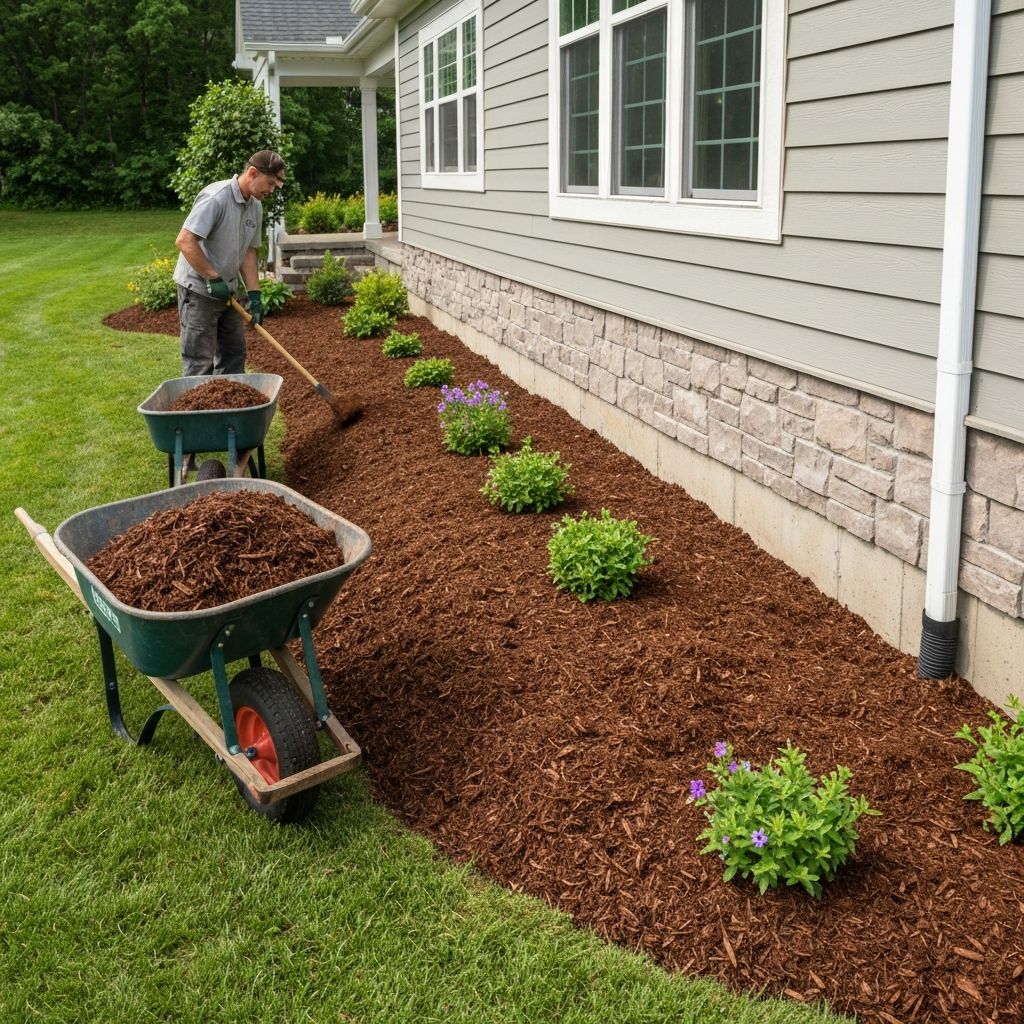 Also, from your property notes last year, you mentioned wanting mulch for the front beds. Fresh hardwood mulch keeps roots cool, retains moisture, and really makes the colors pop against your home.